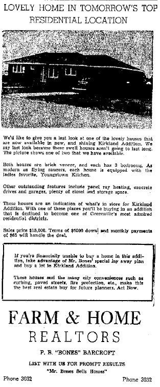 If you're financially unable to buy a home in this addition, take advantage of Mr. Bones' special lay away plan and buy a lot in Kirkland Addition.